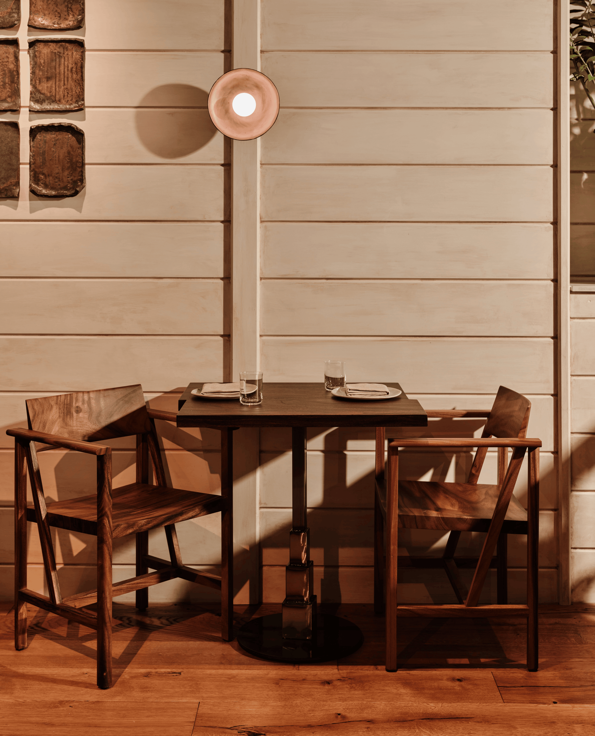 Designed by Thai-American interior designer May Redding, AngloThai brings together British ingredients and Thai cooking traditions. Within its first months, the restaurant—helmed by chef John Chantarasak—earned a Michelin star. Our handcrafted brass pendants and sconces appear throughout the dining room and restrooms, their warm patina echoing the depth of the cuisine.