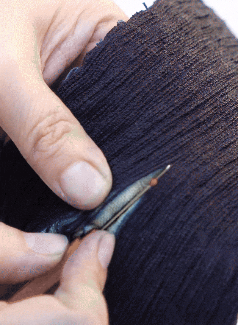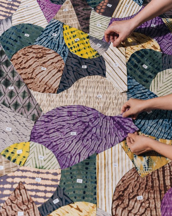 But the reality is that our shibori designs take a substantial amount of time to create. Each piece involves stitching, tying, compression and a lengthy dyeing process. And all of that has to be done by hand, there are no machines that exist to make that process easier.