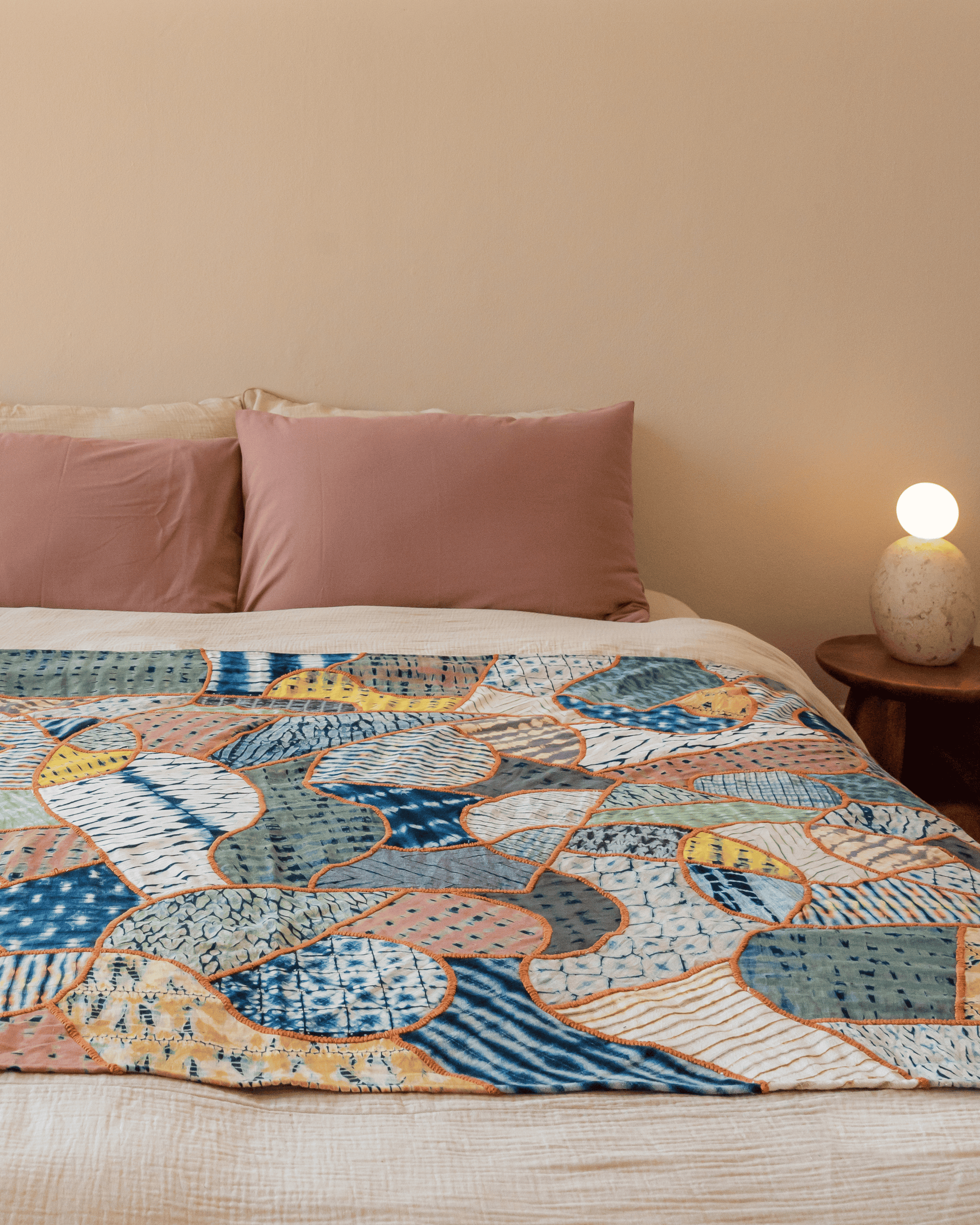 Rooted in our studies of traditional textiles in Japan, this deep respect for the material is most clearly expressed in our patchwork compositions like the one made for PERN BAAN. It's this very attentiveness, this celebration of each piece, that contributes so profoundly to their unique beauty.