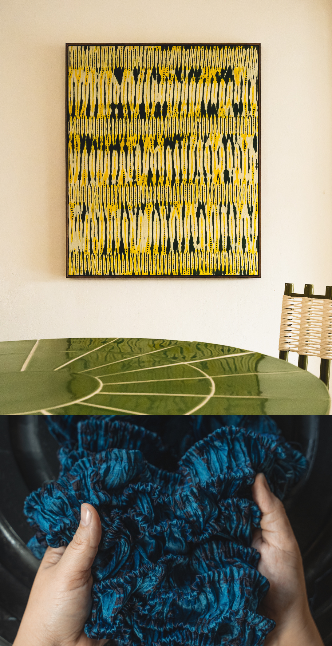 For our showroom opening exhibition, PERN BAAN collaborated with Slowstitch to adapt their vibrant, hand-dyed textiles into several pieces of home decor.