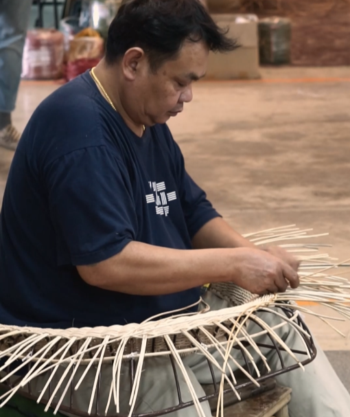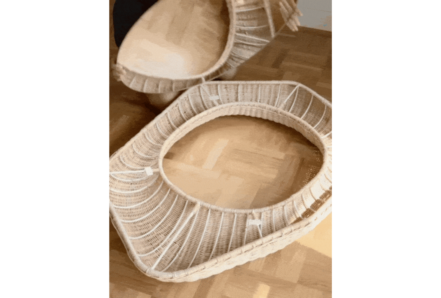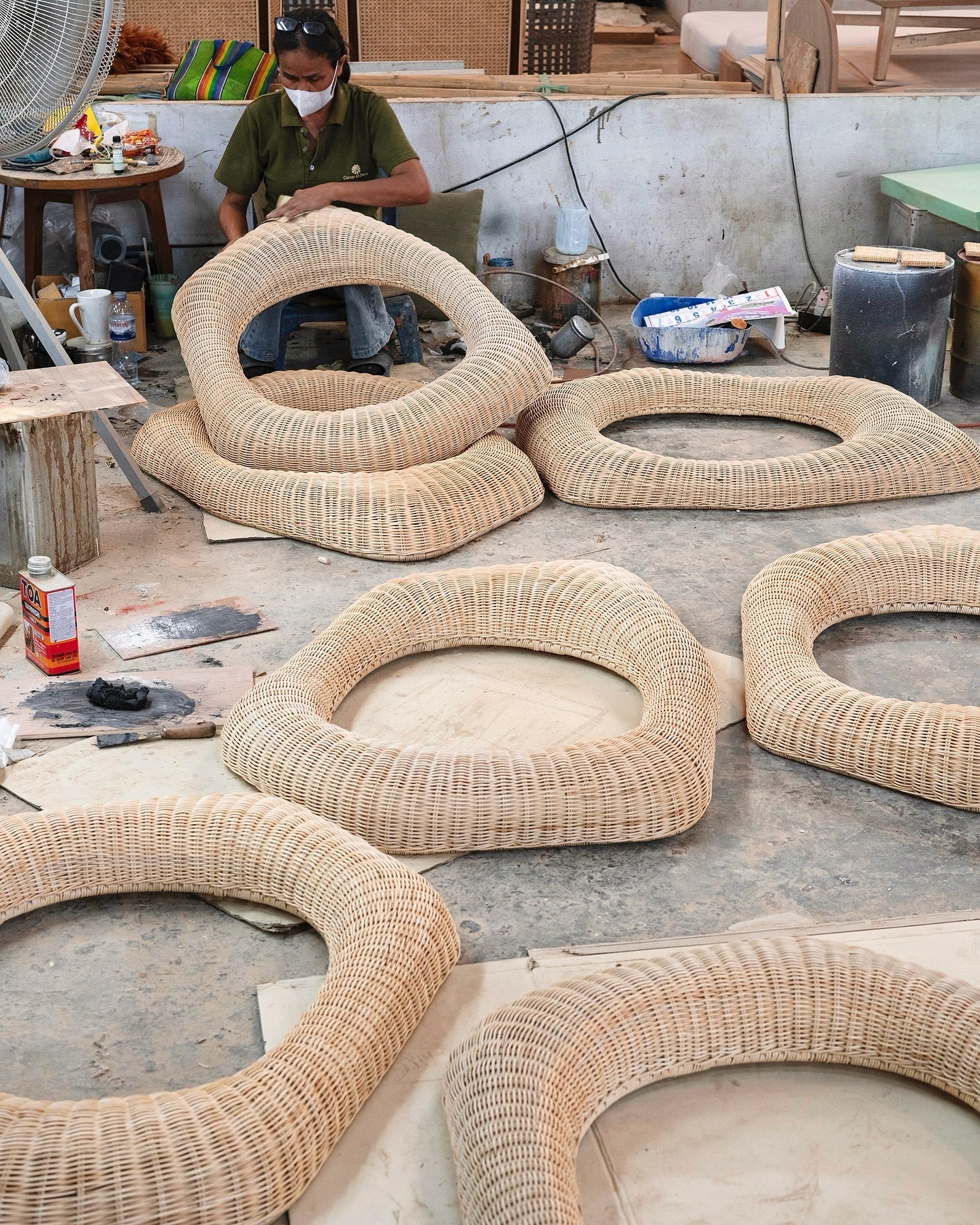 Once the framework is finished, it is sent to our rattan weaving partners at Corner 43 Decor. Located on the outskirts of Bangkok, the team at Corner 43 has over 3 decades of experience making woven cane furniture. The weaving process begins with selecting high-quality rattan, which is carefully soaked to enhance its flexibility.