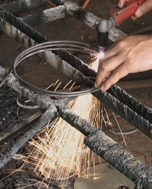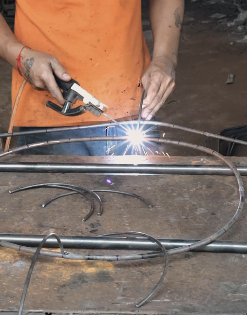 The journey of a Waii Mirror begins in Hang Dong, Chiang Mai at the workshop of P’ Jed. A highly skilled metal artisan who has been sculpting custom furniture and lighting for decades, P Jed and his team specialize in complex bent steel designs.