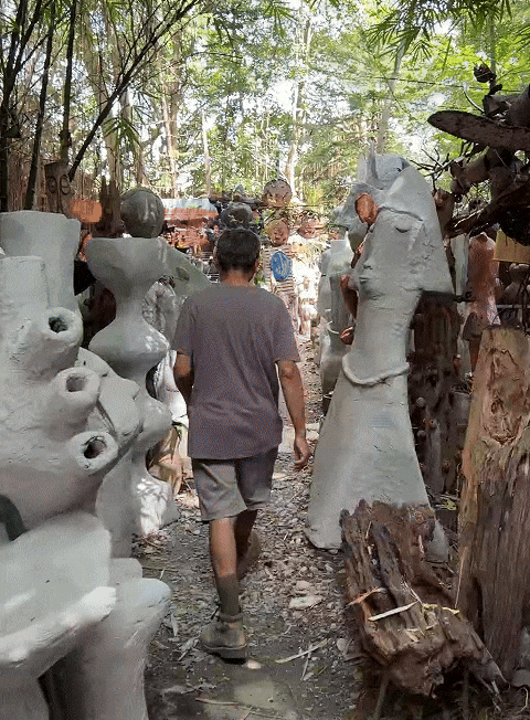 Inside, the central studio buzzes with activity. You might find P Dang sketching, painting, or directing his team as they fabricate a new piece out of salvaged scrap metal. He studied fine art in Thailand but didn’t start his full-time practice until much later—after spending 14 years living in New York City in the 1990s.