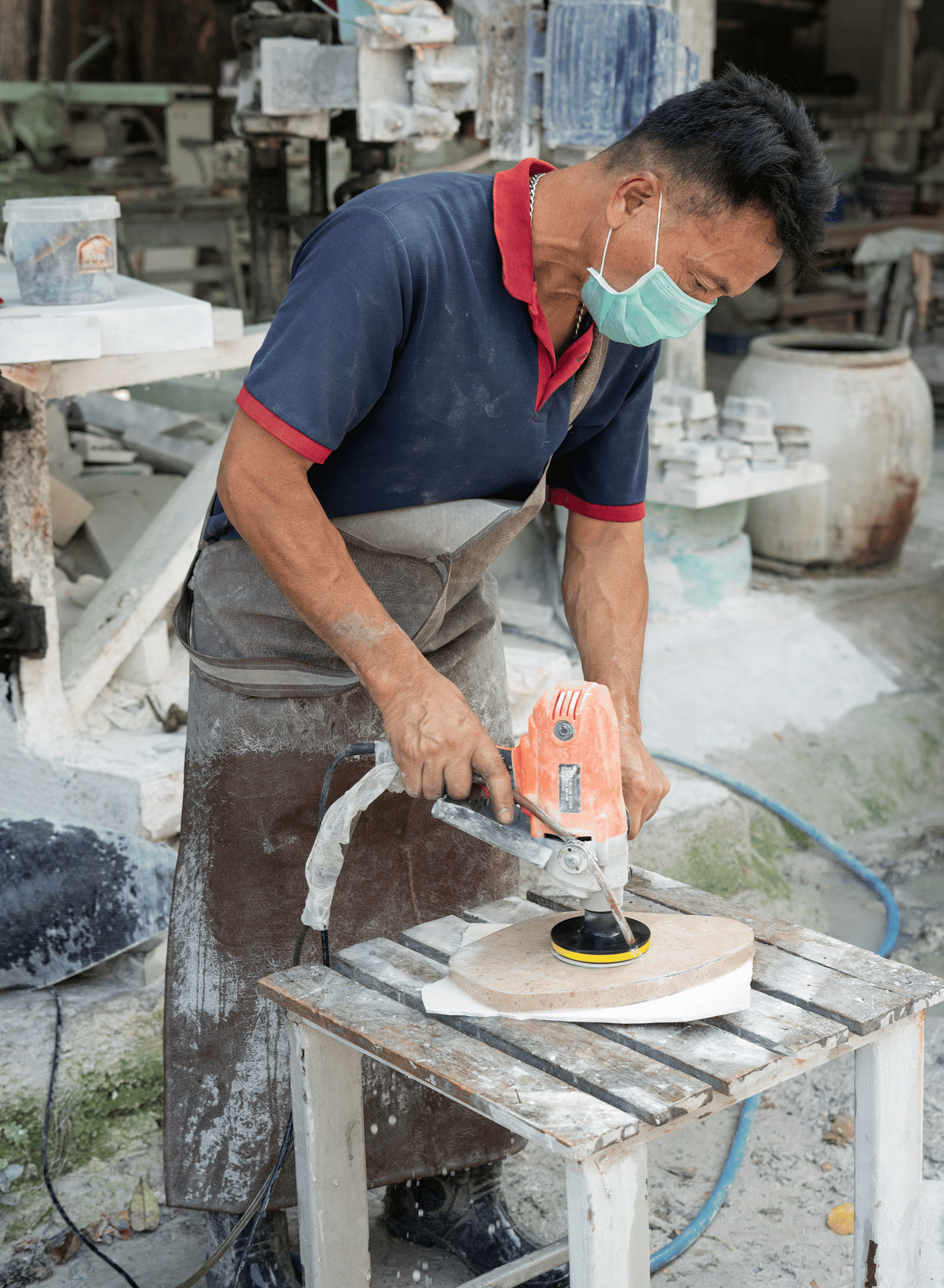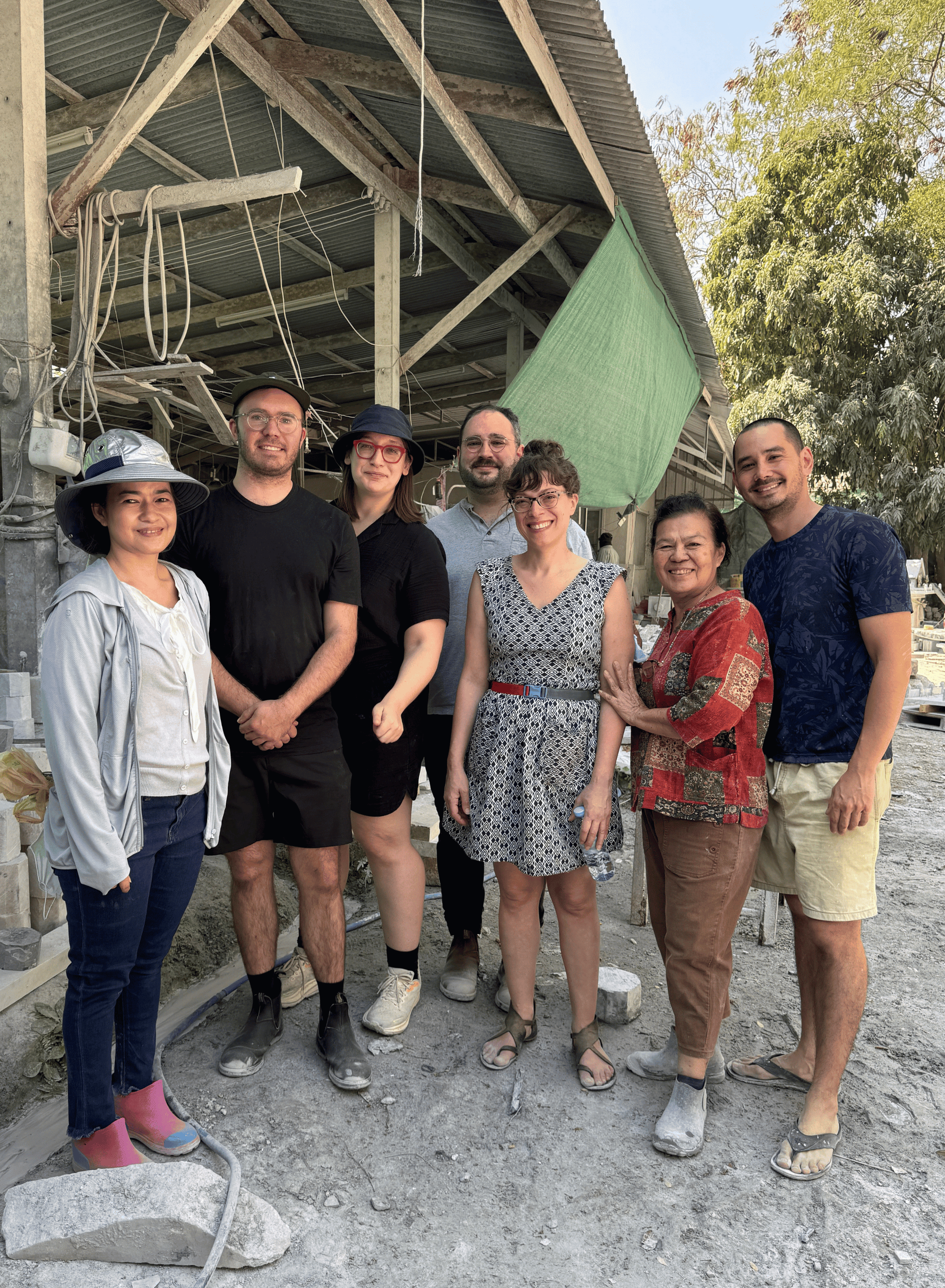 Together with fellow New York designers Steven Bukowski, Michael Yarinsky of Tangible Space, and Kira De Paola of Kin + Company, we traveled to our marble partners in Saraburi province. The second generation owner of her family business, P’ Wee and her mother oversee the production of our marble Blob Sconces alongside her team of artisans. While we’ve collaborated for years, this was the first time our New York designers experienced the process firsthand—witnessing the transformation from raw boulder to sculptural lighting.