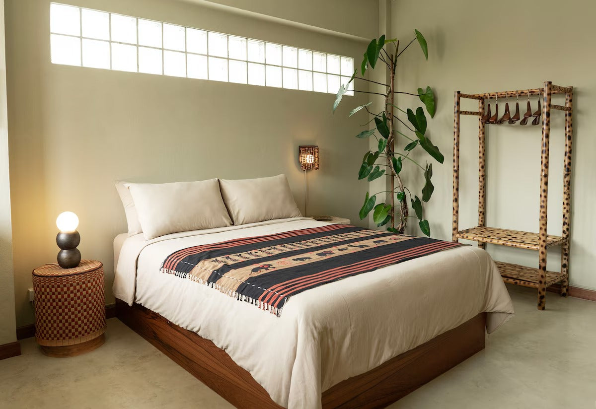 Part lighting fixture, part wall sculpture, the STK Beaded Sconce embodies Pern Baan's dedication to craftsmanship and a story rooted in local Thai materiality.